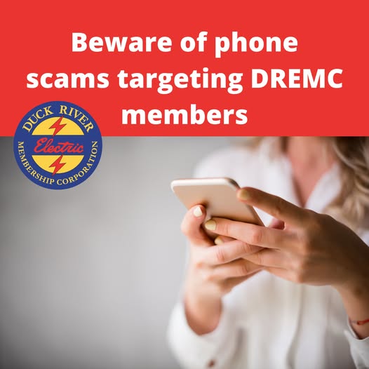 Duck River Electric (DREMC) has received several reports of scammers impersonating the cooperative and pressuring members to pay an urgent past-due balance to avoid disconnection.